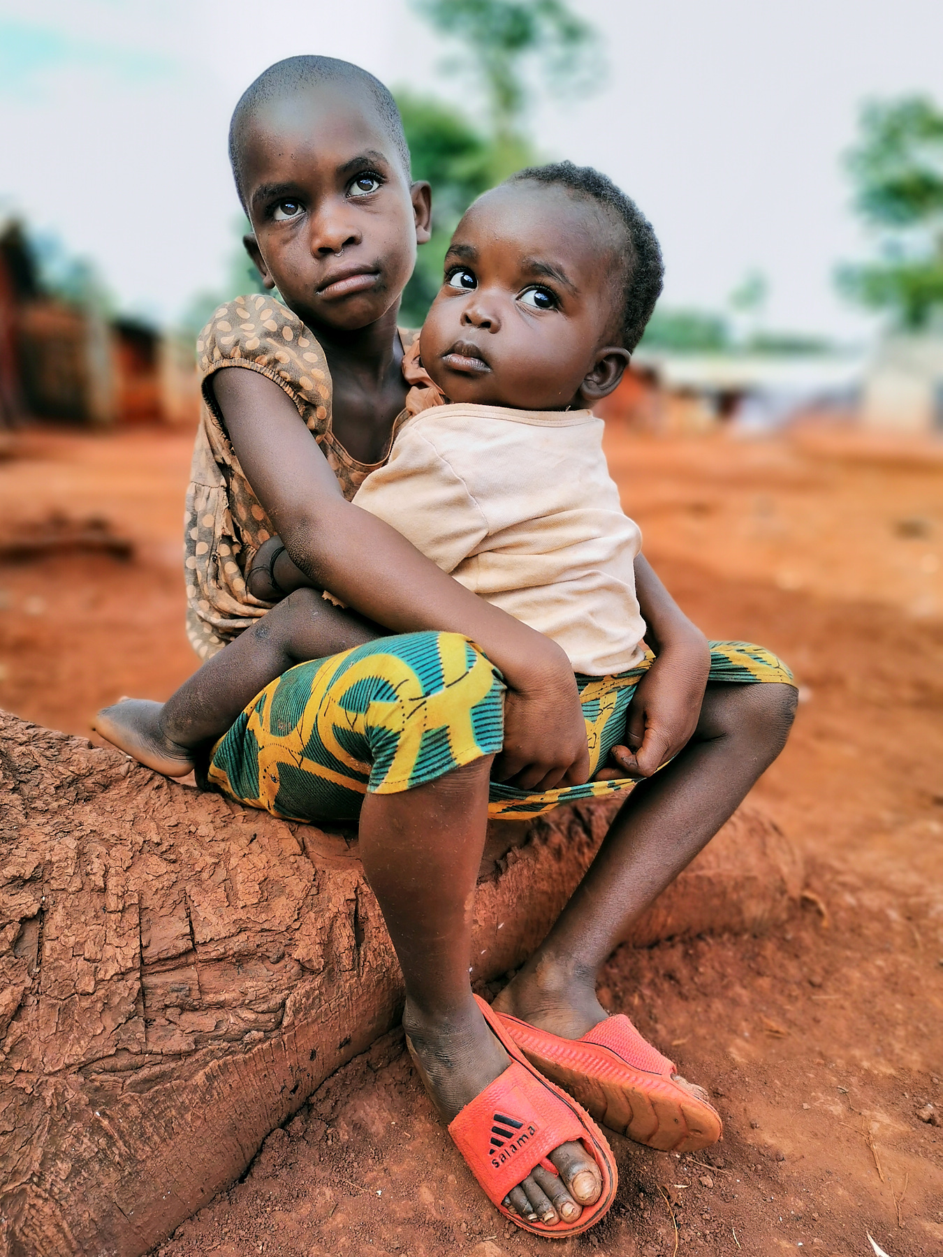 Two little girls sitting in front of their fence door are waiting for their mother. When I was in this village, I was surprised to see these children sitting in a state of emergency. My concern was to know why they were in this condition, the older daughter explained to me: "My little sister is very hungry and my mother is not here, she went to buy food at the market. She was already very hungry so I do not have enough patience because we are hungry. It's noon, the other brothers have already gone to their neighbor's house, and I'm left alone with her. ''